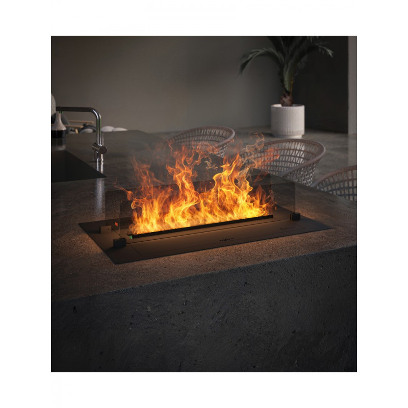 Управління паровим каміном здійснюється за допомогою пульта дистанційного керування або телефонного додатка. Можливість встановлення в плиту K-G або MDF. Камін живиться від води та вимагає підключення до мережі 220В.