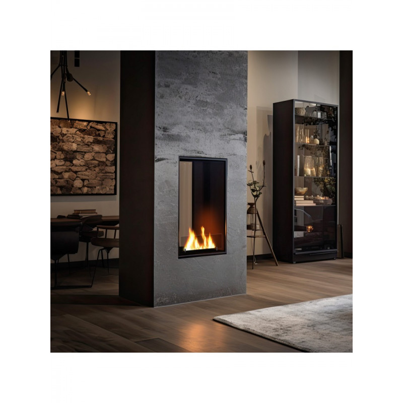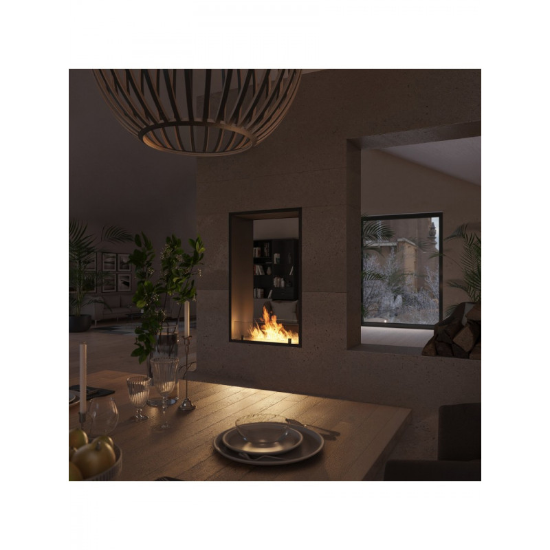Модель 2 Side 1000 SLIM/vert призначена для встановлення в стіні між двома кімнатами. Біокамін має власну систему повітрозабору, що запобігає виникненню тиску під пальником, що призводить до переливання палива.