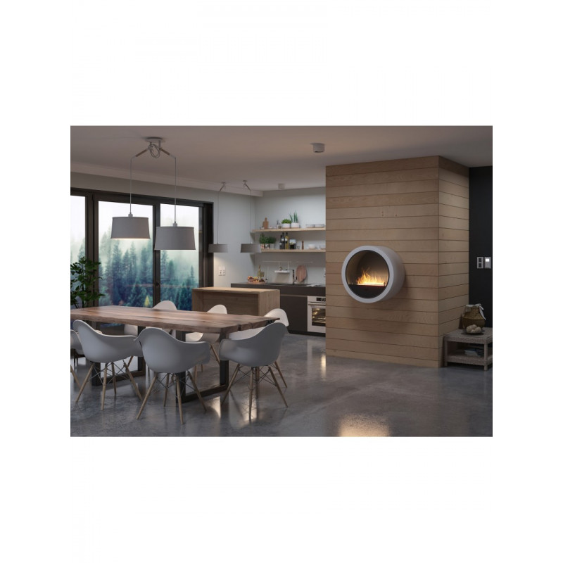 Біокамін INCYRCLE у виконанні WALL являє собою круглий камін, який монтується на стіну. Модель WALL створена на основі підвішеного на трубі каміна Incyrcle. Incircle Wall не займає так багато місця, а установка дуже проста - достатньо невеликої площі стіни з негорючого матеріалу. Всі елементи, необхідні для складання, входять.