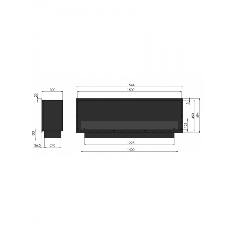 Модель INSIDE BLACK 1500 - це камін, призначений для установки в підготовлену нішу. Біокамін Inside BLACK 1500 - досконало допрацьована форма з ефективною віддачею тепла до приміщення. Біокамін має власну систему повітрозабору, що запобігає виникненню тиску під пальником, що призводить до переливання палива. Вставка з керамічного волокна з сіткою підвищує безпеку, продовжує та оптимізує процес горіння. Розсувна планка дозволяє регулювати розмір полум'я і безпечно гасити камін, а форма хвилі створює додатковий 3D ефект. Також пальник має систему вентиляції, яка запобігає створенню тиску під пальником у разі переповнення палива. Додатковий резервуар під пальником гарантує більшу безпеку в разі витоку палива за межі пальника.