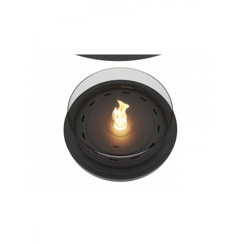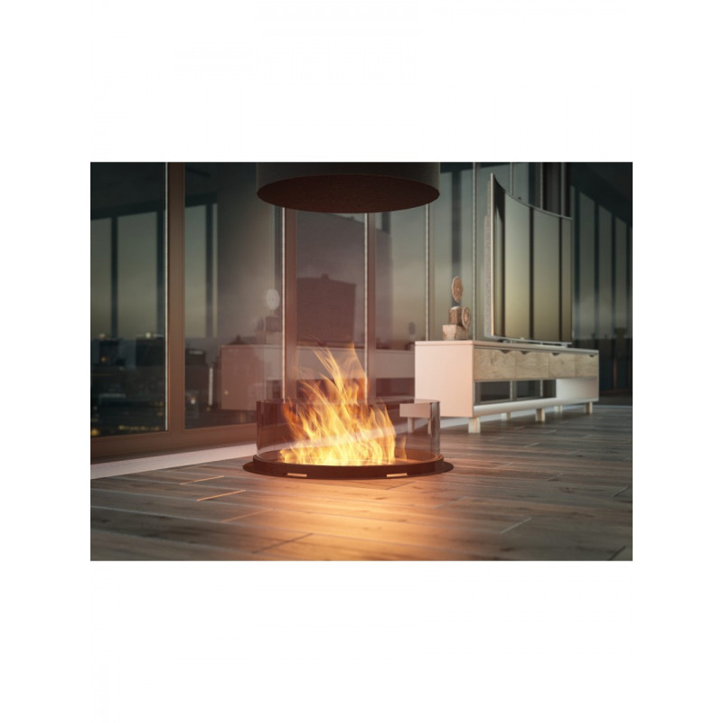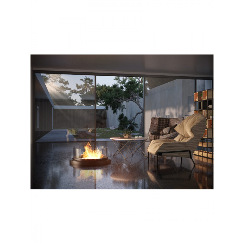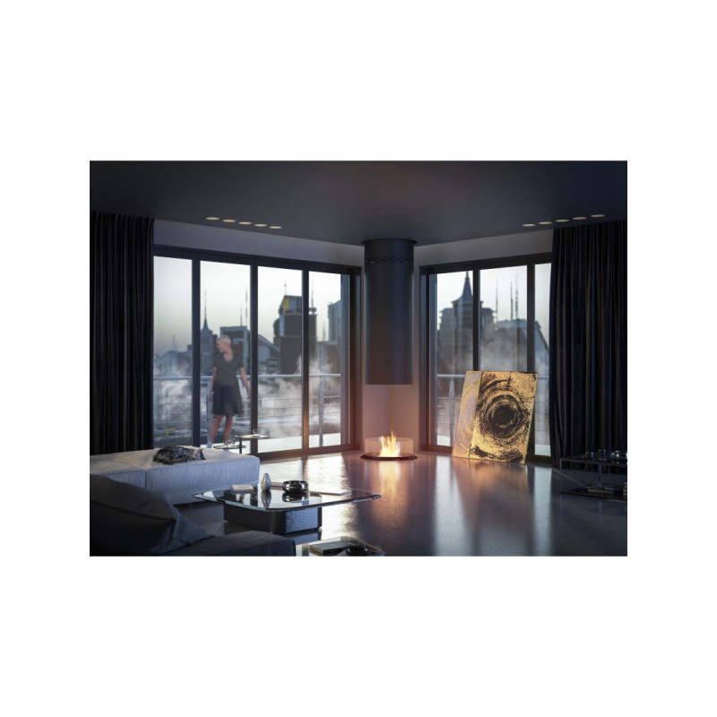 INROUND – це біокамін безпрецедентної форми. Кругла форма означає, що каміном можна милуватися з усіх боків, як вогнем. Основу можна монтувати як безпосередньо в підлогу, так і в будівлі, наприклад, в меблі. Труба, що входить до комплекту, імітує мотив димових газів, які НЕ виникнуть при спалюванні біопалива, тому камін можна використовувати будь-де. Для цієї моделі спеціально адаптована чорна конфорка з адаптерами, що регулюють розмір полум'я і дозволяють його гасити. Чорне вогнище надає стилю та елегантності всій формі.