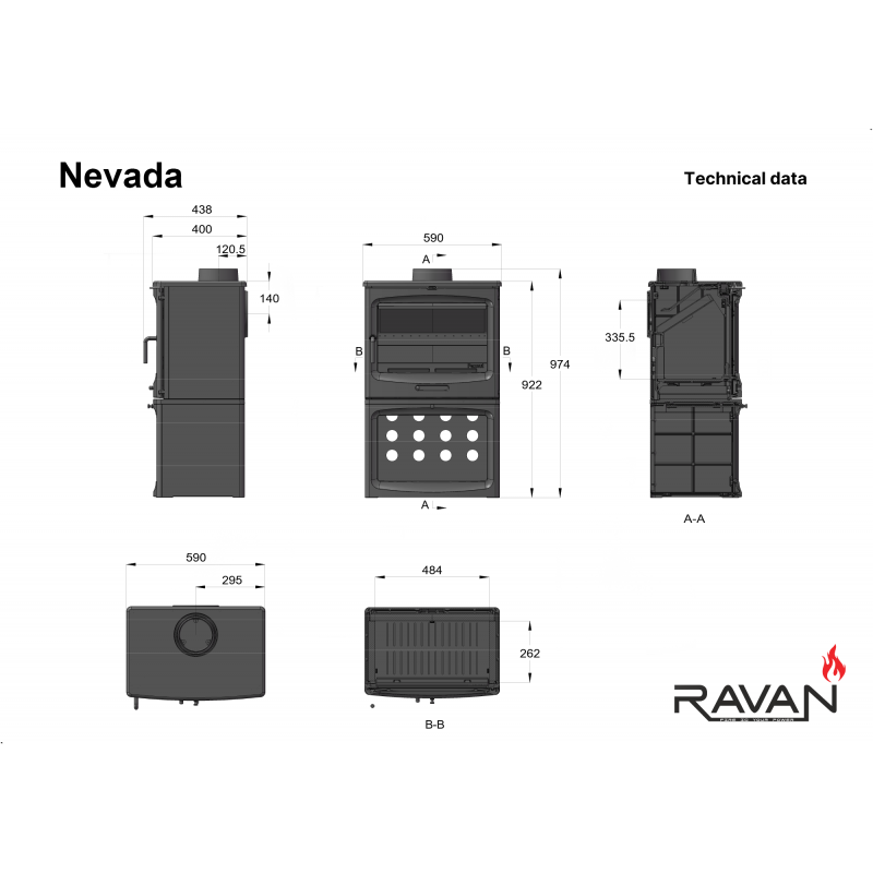 Чавунна дров’яна піч-камін Ravan Nevada 14 кВт
