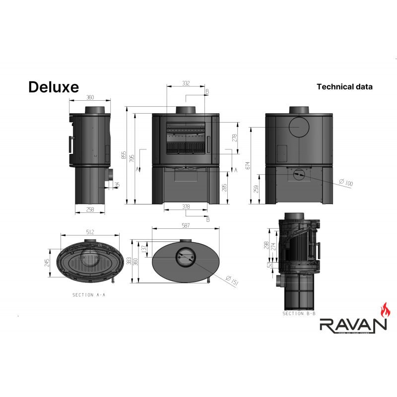 Чавунна піч камін Ravan Deluxe 14 кВт на дровах