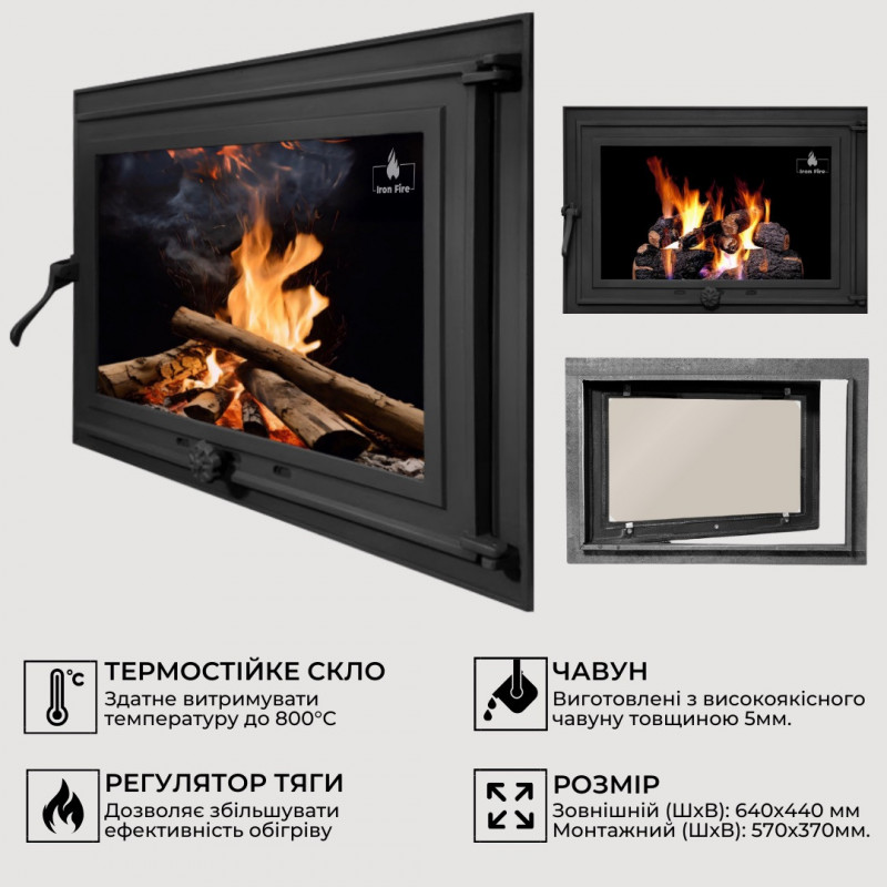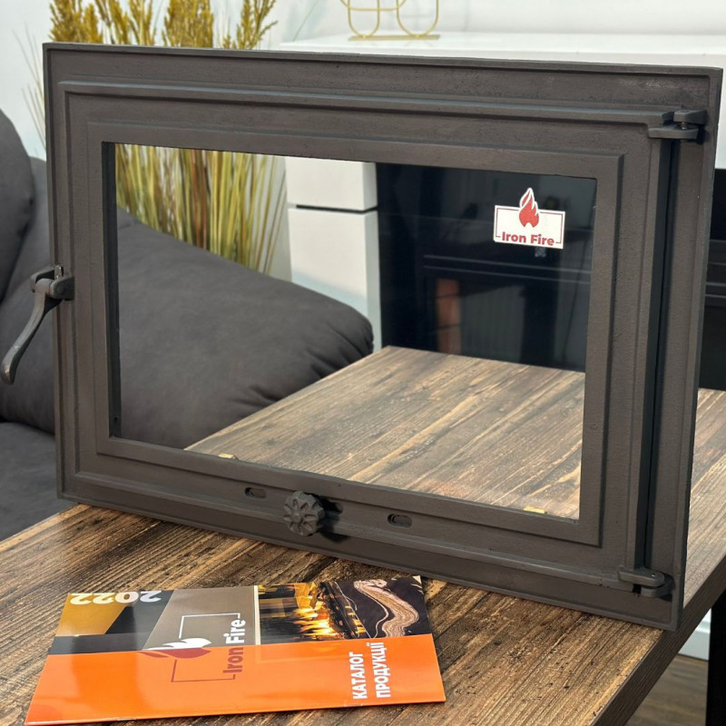 Дверцята чавунні для каміна/барбекю Iron Fire Adam 640x440 мм з вогнетривким склом Robax
