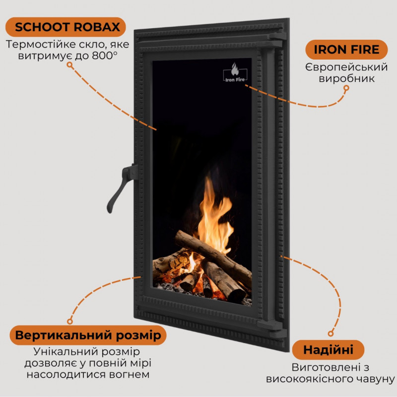Дверцята чавунні для каміна/барбекю Iron Fire Brown 440x640 мм з вогнетривким склом Robax