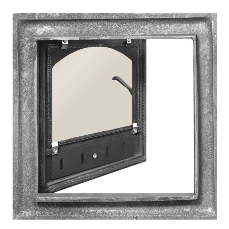 Купити чавунні дверцята зі склом Style 40 розміром 390х390 мм з доставкою по Україні можна просто зараз у магазині КахельPlus.