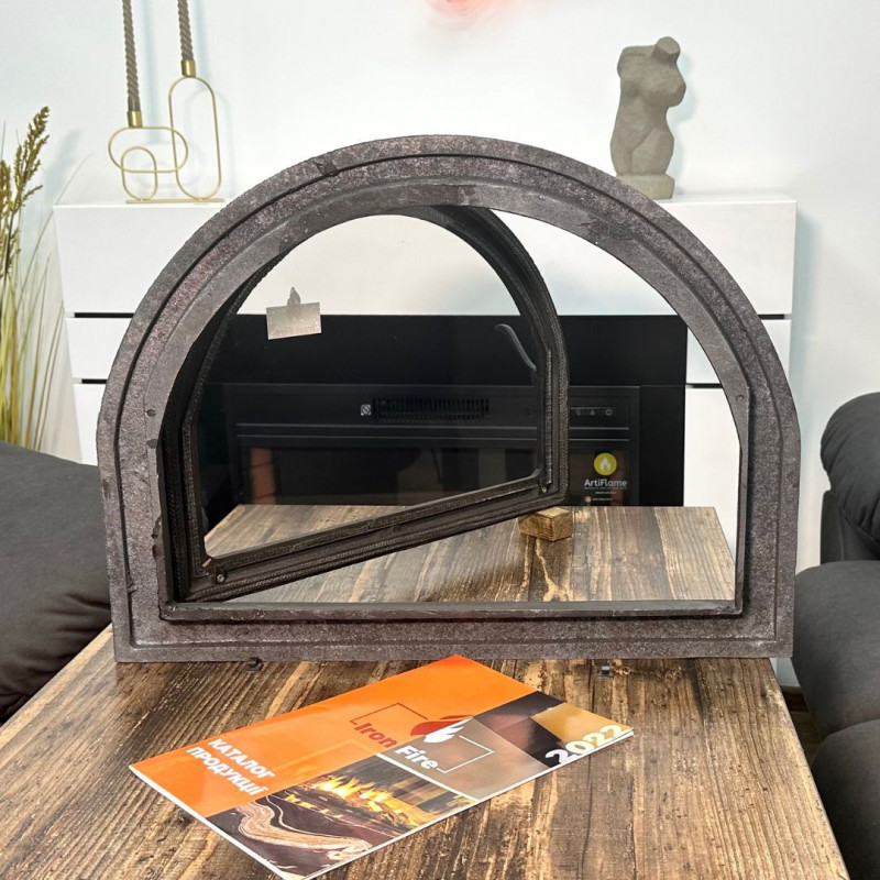 Купити чавунні дверцята зі склом Viola розміром 585х440 мм з доставкою по Україні можна просто зараз у магазині КахельPlus.