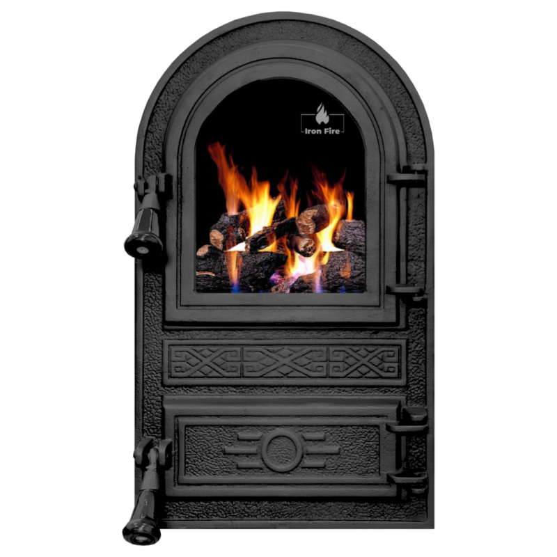 Дверцята чавунні для печі/барбекю Iron Fire Flower 305х520 мм з вогнетривким склом Robax