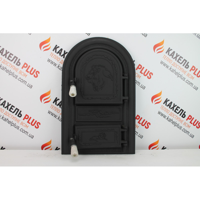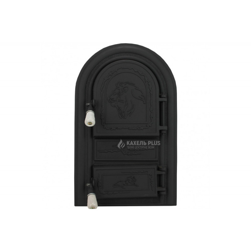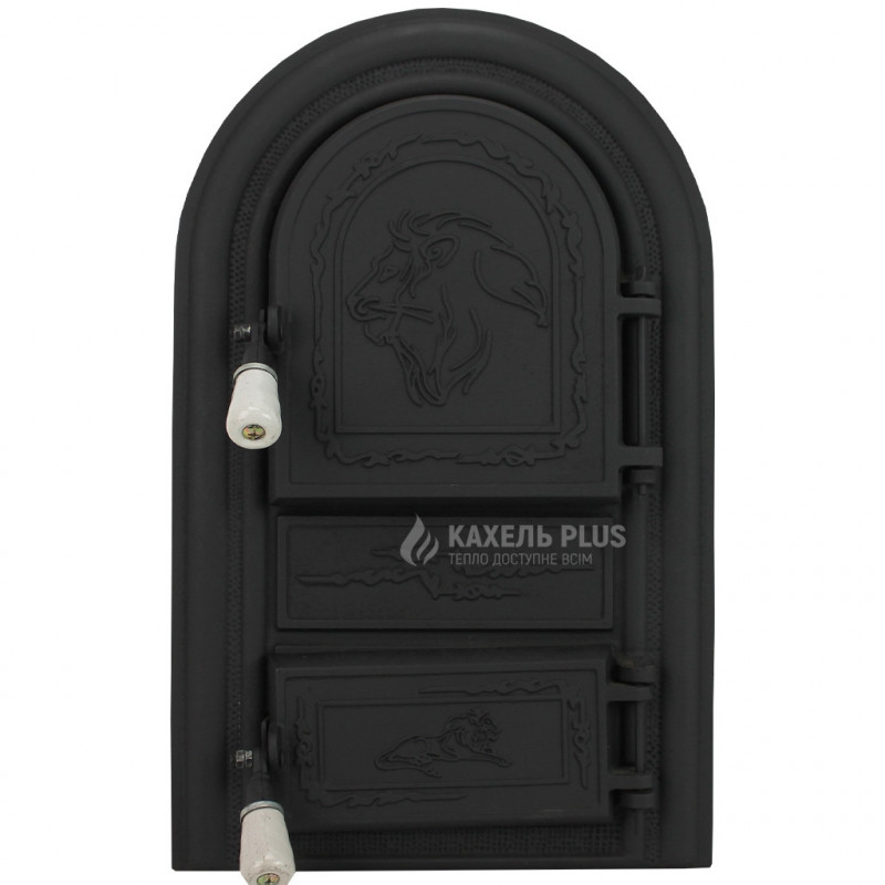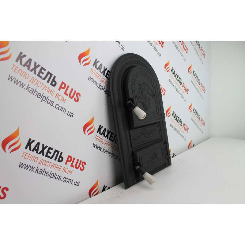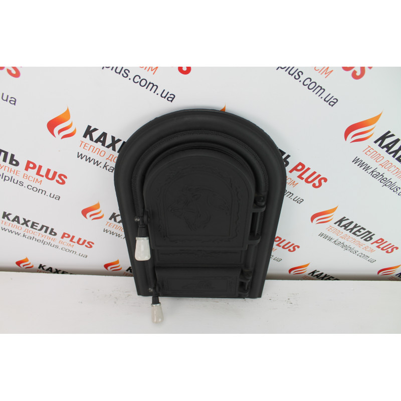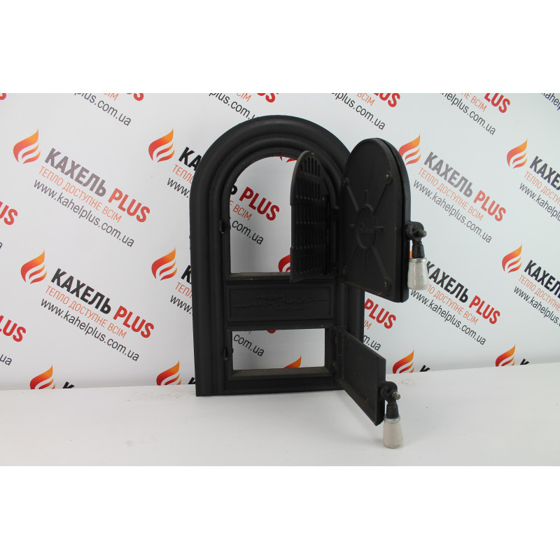 Купити чавунні дверцята зі склом Leon 345х560 мм з доставкою по Україні можна прямо зараз у магазині КахельPlus.
