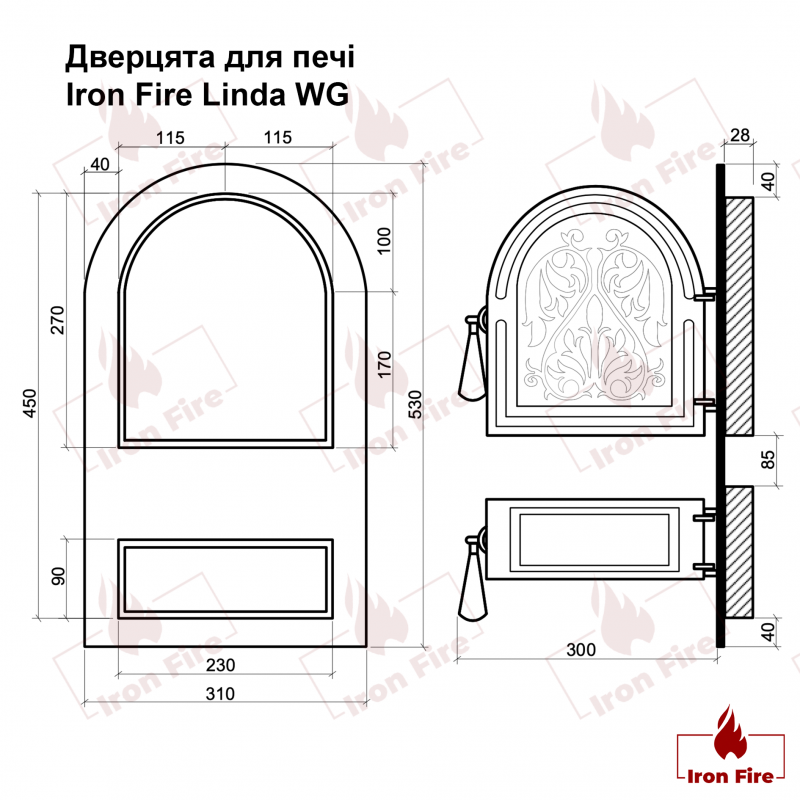 Дверцята чавунні для печі/барбекю Iron Fire Linda WG 310х530 мм