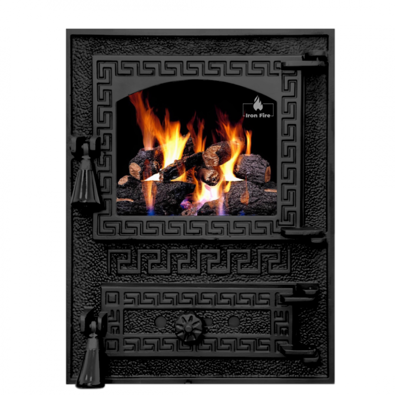 Дверцята чавунні для печі/барбекю Iron Fire Versace 370х485 мм з вогнетривким склом Robax