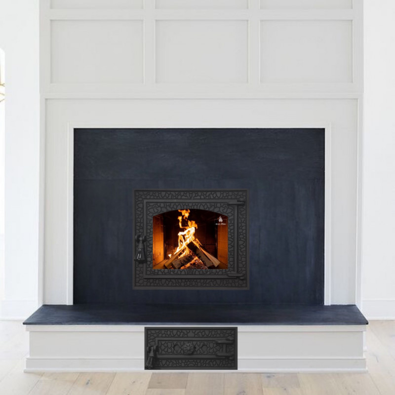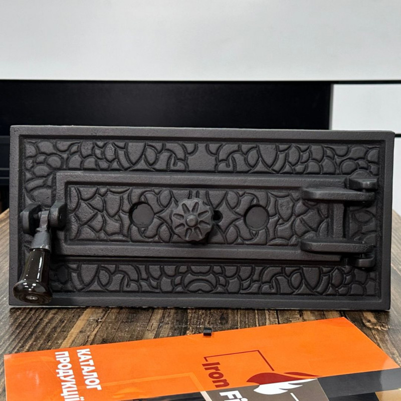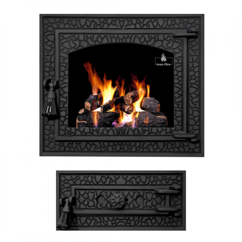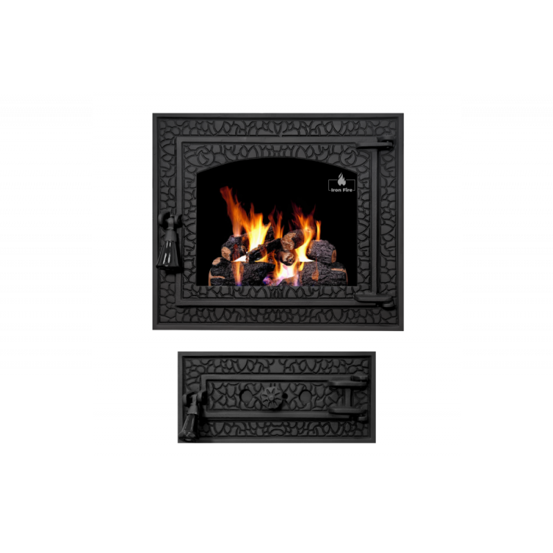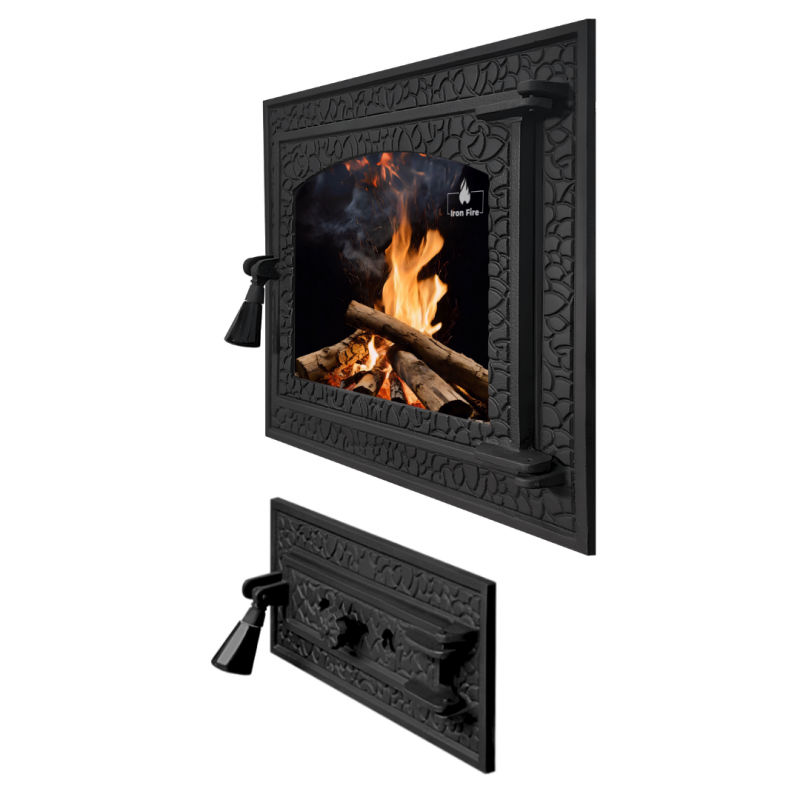 Комплект дверцят чавунні для каміна/барбекю Iron Fire Bastion L 460х400 мм з вогнетривким склом Robax + піддувальна Bastion 375х175 мм