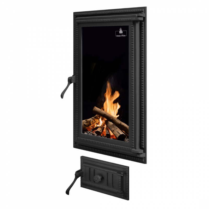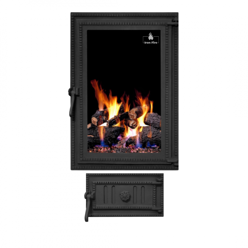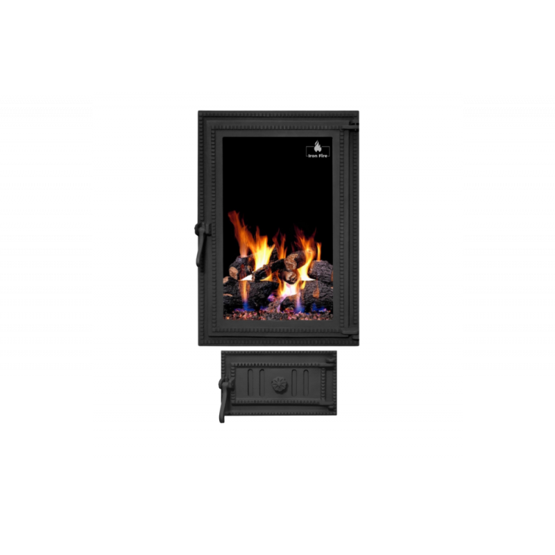 Комплект дверцят чавунні для каміна/барбекю Iron Fire Brown 440x640 мм з вогнетривким склом Robax + піддувальна Style 35 315х180 мм