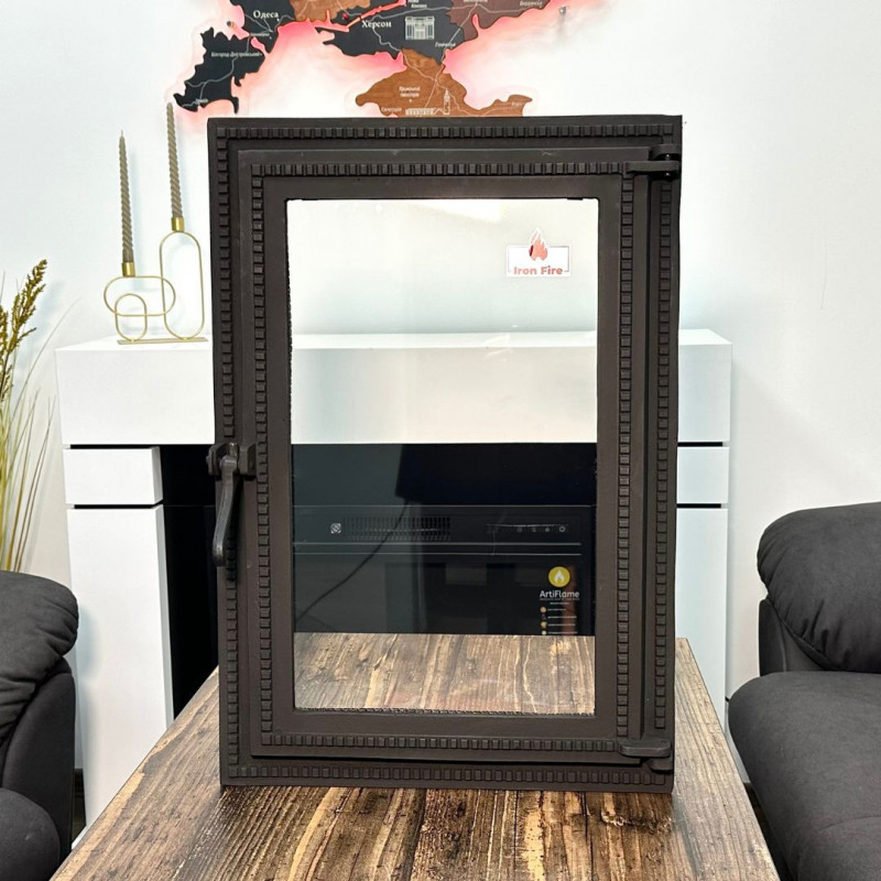Купити чавунні дверцята зі склом Brown розміром 440x640 мм з доставкою по Україні можна просто зараз у магазині КахельPlus.