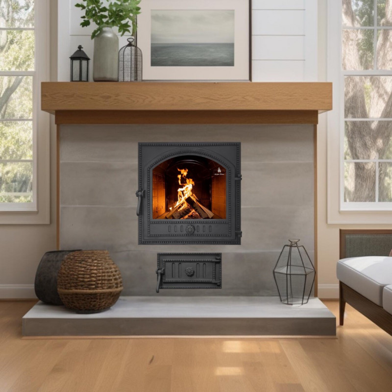 Чавунні дверцята для каміна Iron Fire Cameron — це якісне рішення для камінів, печей і барбекю. Модель оснащена вогнетривким склом Robax (4 мм), витримує до 800 °C і має регулятор тяги. Завдяки герметичності та високій теплоємності чавунні дверцята підвищують ефективність печі до 50% і забезпечують економію палива. У комплект також входить піддувальна дверка Style 35, що забезпечує зручне регулювання подачі повітря для підтримання ефективного горіння. Розмір моделі 480х475 мм та розміри для монтажу 400х400 мм, розмір піддувальної 315х180 мм, розмір для монтажу 260х115 мм. | ![]() |