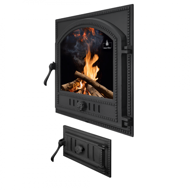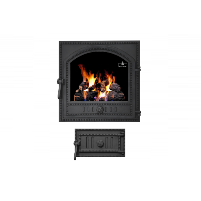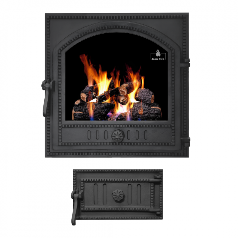 Комплект дверцят чавунні для каміна/барбекю Iron Fire Cameron 480х475 мм з вогнетривким склом Robax + піддувальна Style 35 315х180 мм