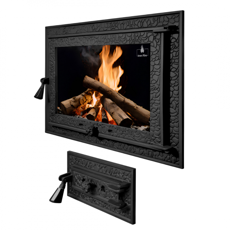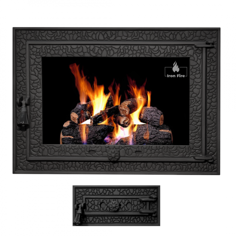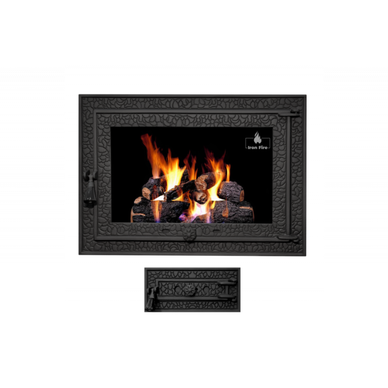 Комплект дверцят чавунні для каміна/барбекю Iron Fire Magnus 700x500 мм з вогнетривким склом Robax + піддувальна Bastion 375х175 мм