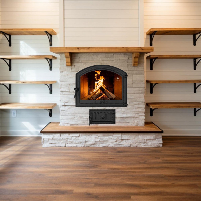 Чавунні дверцята для каміна Iron Fire Sandra — це якісне рішення для камінів, печей і барбекю. Модель оснащена вогнетривким склом Robax (4 мм), витримує до 800 °C і має регулятор тяги. Завдяки герметичності та високій теплоємності чавунні дверцята підвищують ефективність печі до 50% і забезпечують економію палива. У комплект також входить піддувальна дверка Style 35, що забезпечує зручне регулювання подачі повітря для підтримання ефективного горіння. Розмір моделі 575х475 мм та розміри для монтажу 500х395 мм, розмір піддувальної 315х180 мм, розмір для монтажу 260х115 мм. | ![]() |