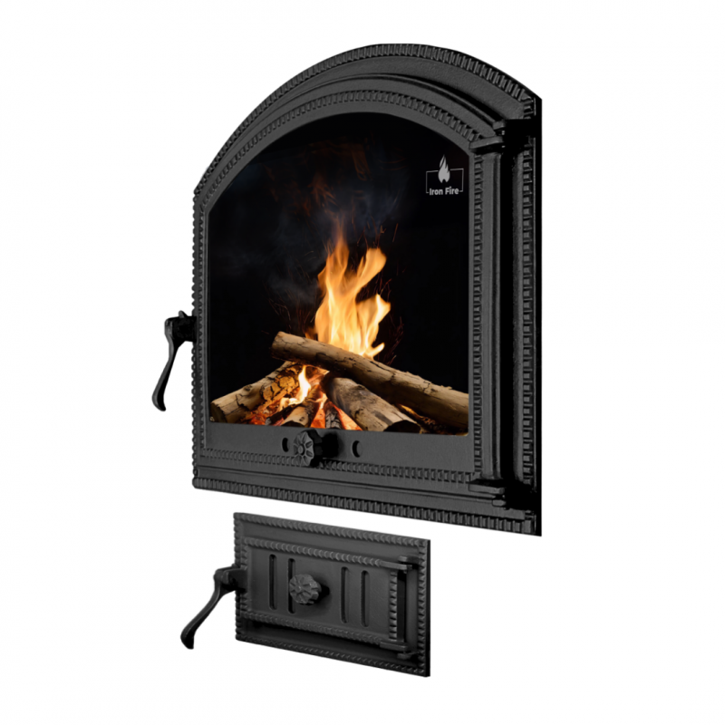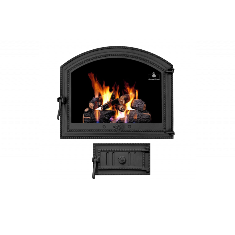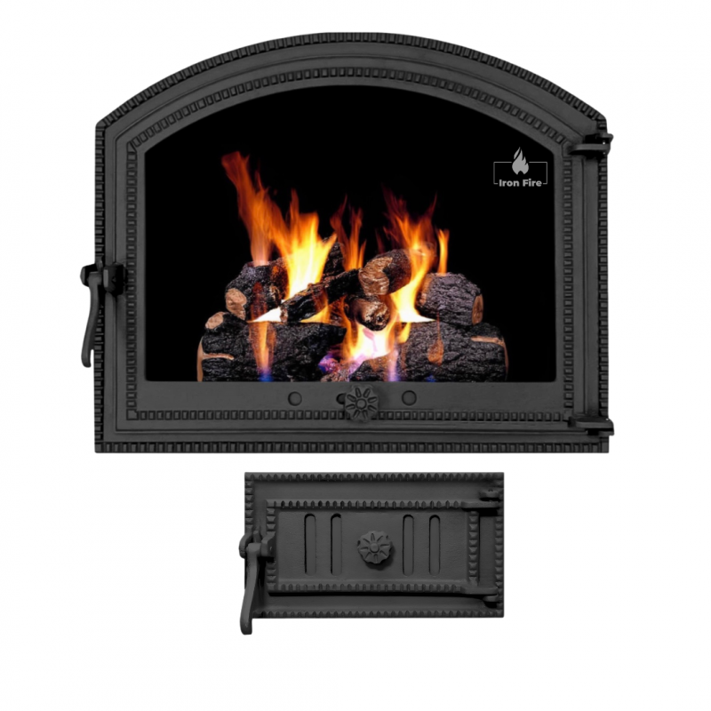 Комплект дверцят чавунні для каміна/барбекю Iron Fire Sandra 575х475 мм з вогнетривким склом Robax + піддувальна Style 35 315х180 мм