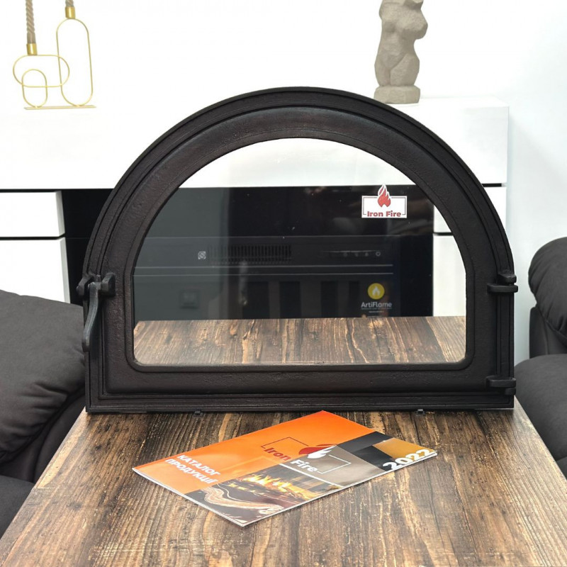 Купити чавунні дверцята зі склом Viola розміром 585х440 мм з доставкою по Україні можна просто зараз у магазині КахельPlus.