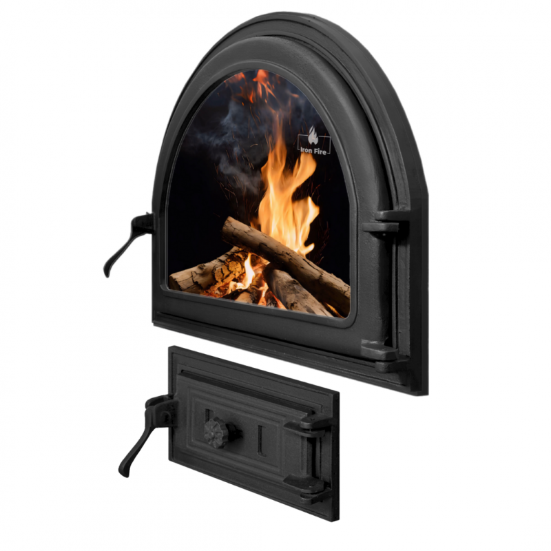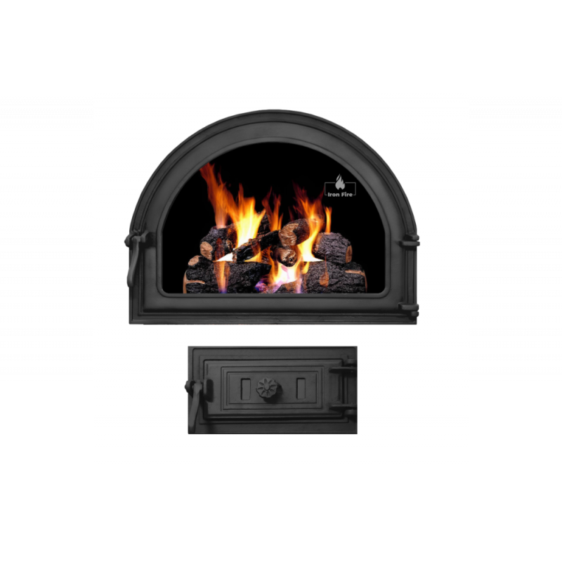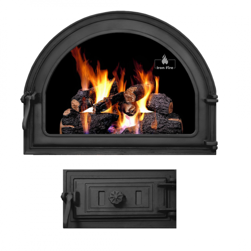 Комплект дверцят чавунні для каміна/барбекю Iron Fire Viola 585х440 мм з вогнетривким склом Robax + піддувальна Style 50 315х165 мм