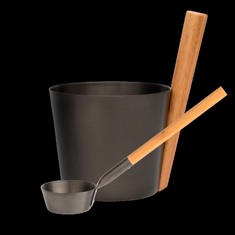 Комплект Шайка + черпак для лазні Rento 5 л  коричневий - це ідеальне поєднання стилю, функціональності та якості для вашої сауни або лазні. Якісна шайка, виготовлена з міцного матеріалу, є необхідним елементом будь-якого саунного простору. Ця модель вироблена фінською компанією-виробником Rento з використанням високоякісних та зносостійких матеріалів, таких як анодований алюміній та бамбук.