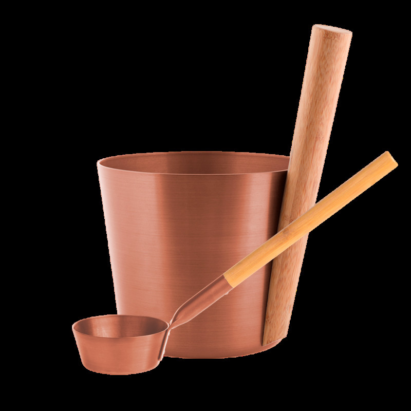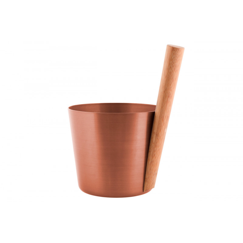Комплект Шайка + черпак для бани Rento 5 л цвет медь - это идеальное сочетание стиля, функциональности и качества для вашей сауны или бани. Качественная шайка, сделанная из прочного материала, является нужным элементом хоть какого саунного места. Эта модель производится финской компанией-производителем Rento с использованием высококачественных и износостойких материалов, таких как анодированный алюминий и бамбук.