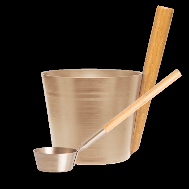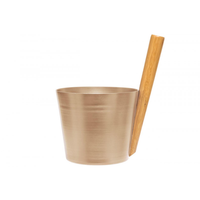 Комплект Шайка + черпак для лазні Rento 5 л  шампань - це ідеальне поєднання стилю, функціональності та якості для вашої сауни або лазні. Якісна шайка, виготовлена з міцного матеріалу, є необхідним елементом будь-якого саунного простору. Ця модель вироблена фінською компанією-виробником Rento з використанням високоякісних та зносостійких матеріалів, таких як анодований алюміній та бамбук.