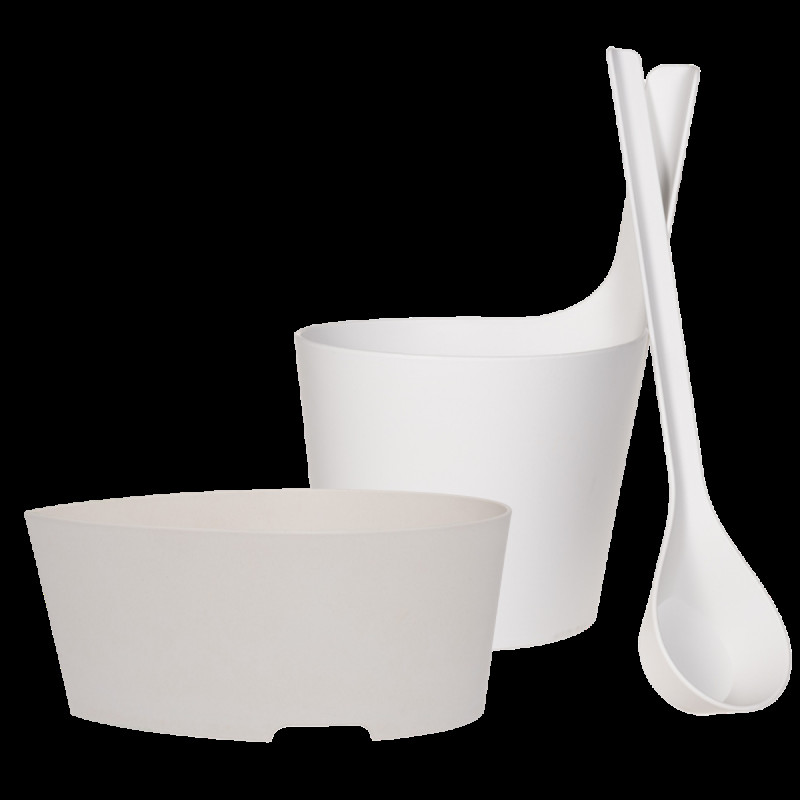 Комплект запарник + шайка + черпак Rento біокомпозит, білий