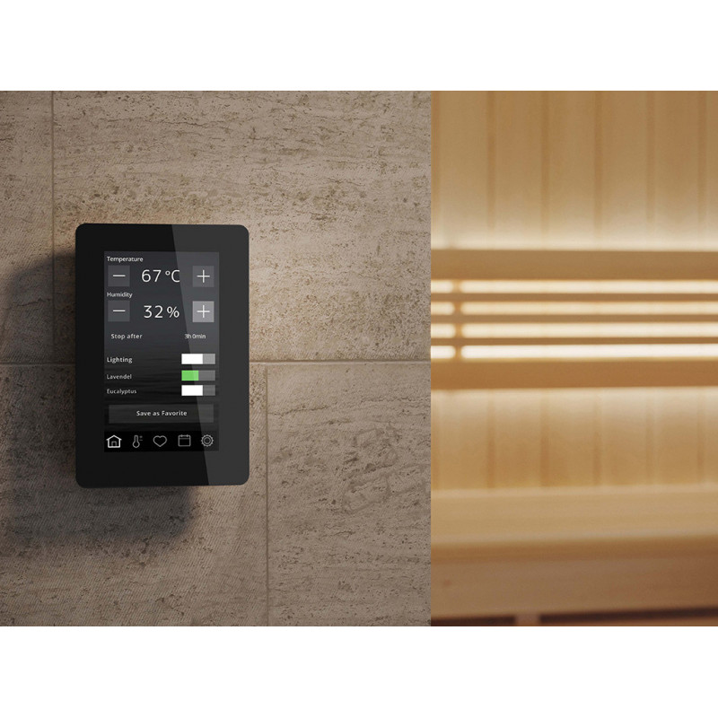 - Управління парогенератора Helo проводиться за допомогою виносного пульта, що дозволяє проводити всі необхідні налаштування для вашої зручності та комфорту. Пульт керування Helo Elite йде у комплекті.