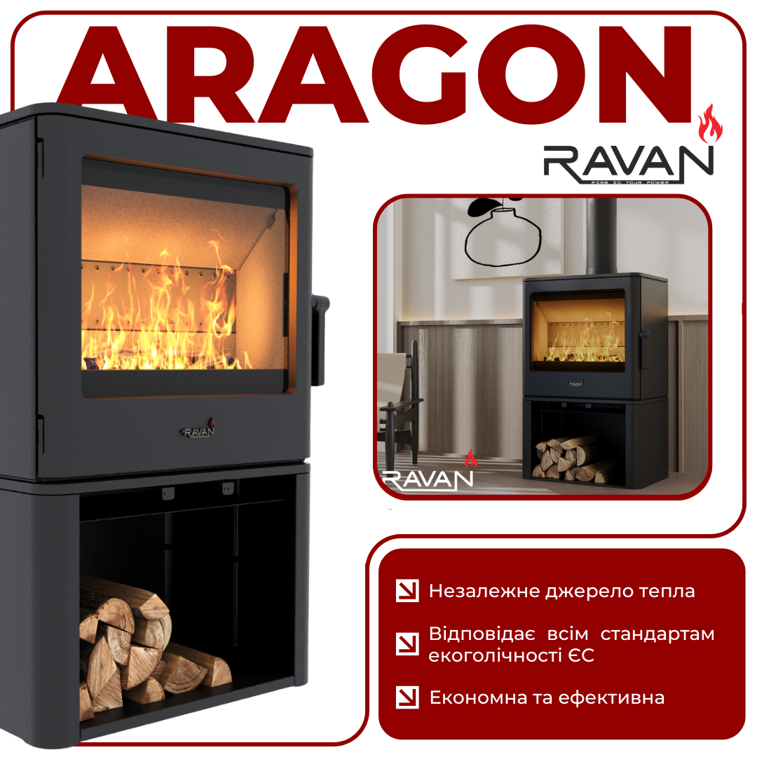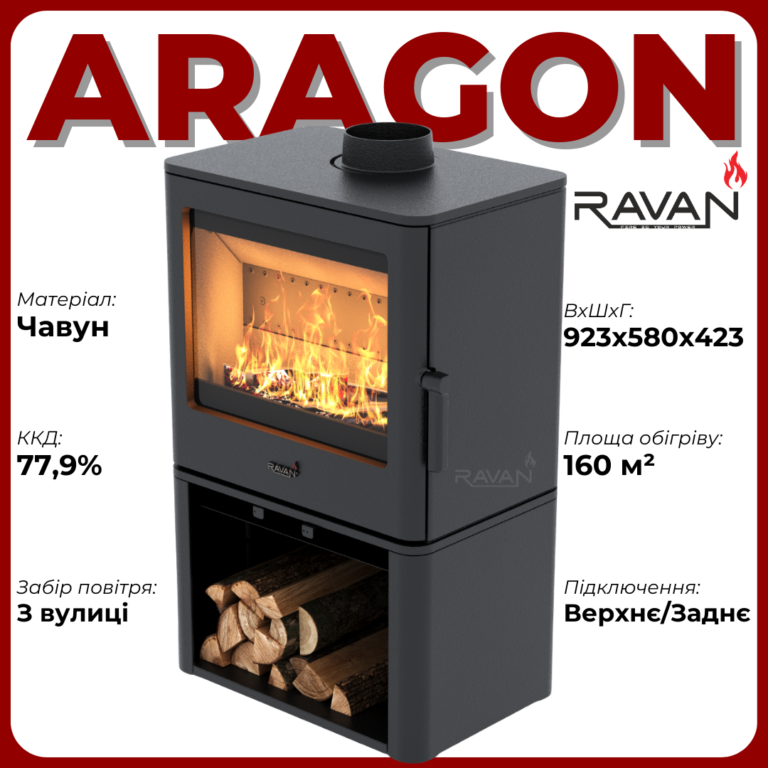 Чугунная дровяная печь-камин Ravan Aragon 16 кВт