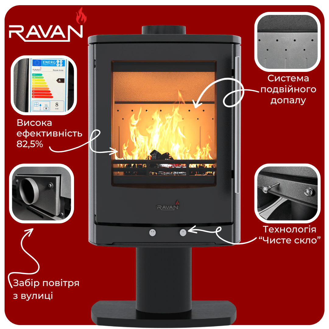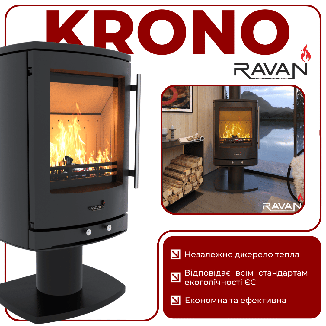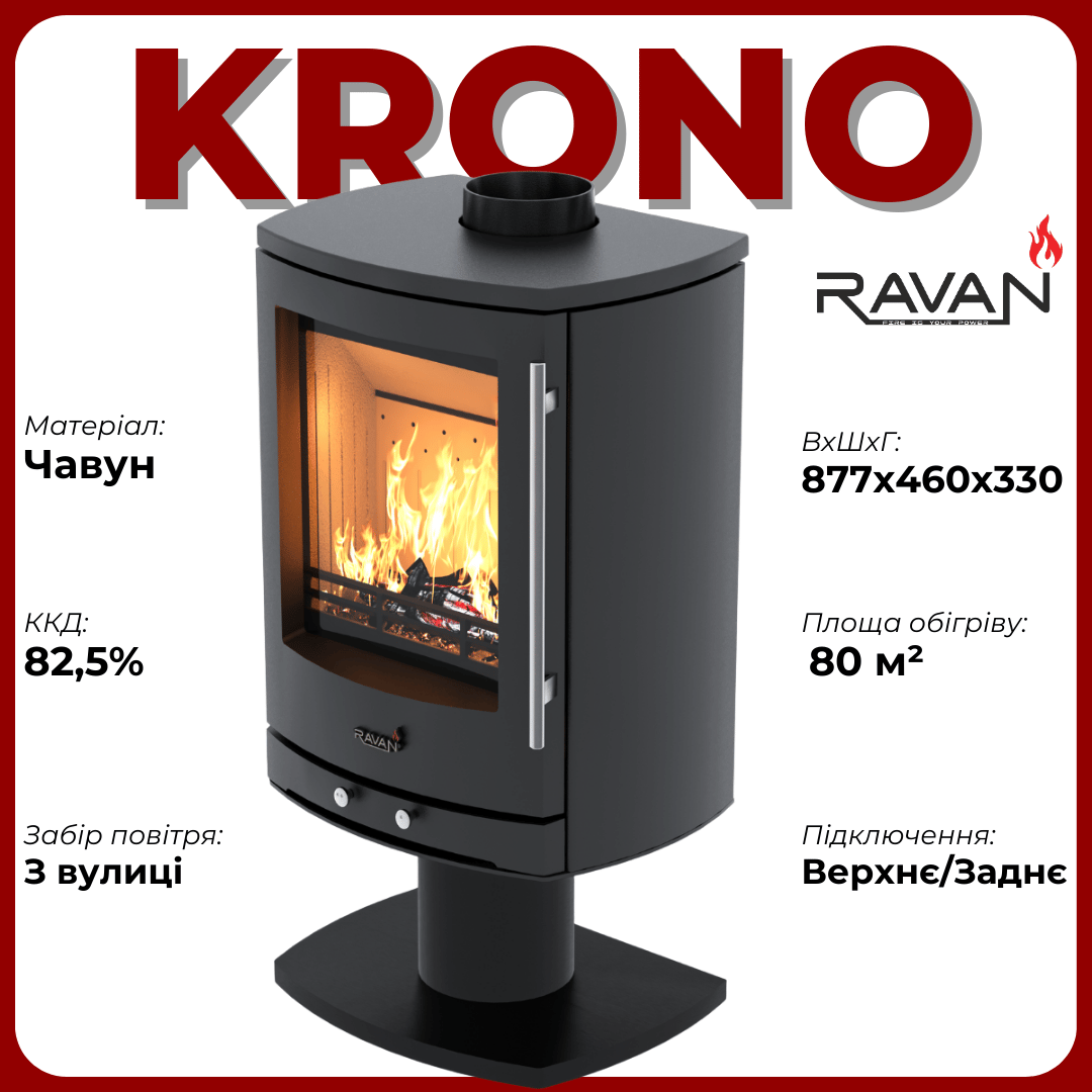 Чугунная дровяная печь-камин Ravan Krono 8 кВт