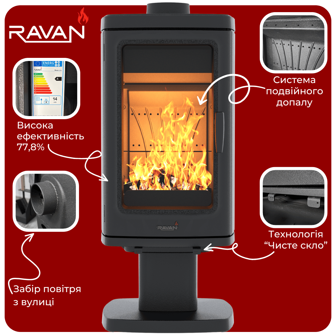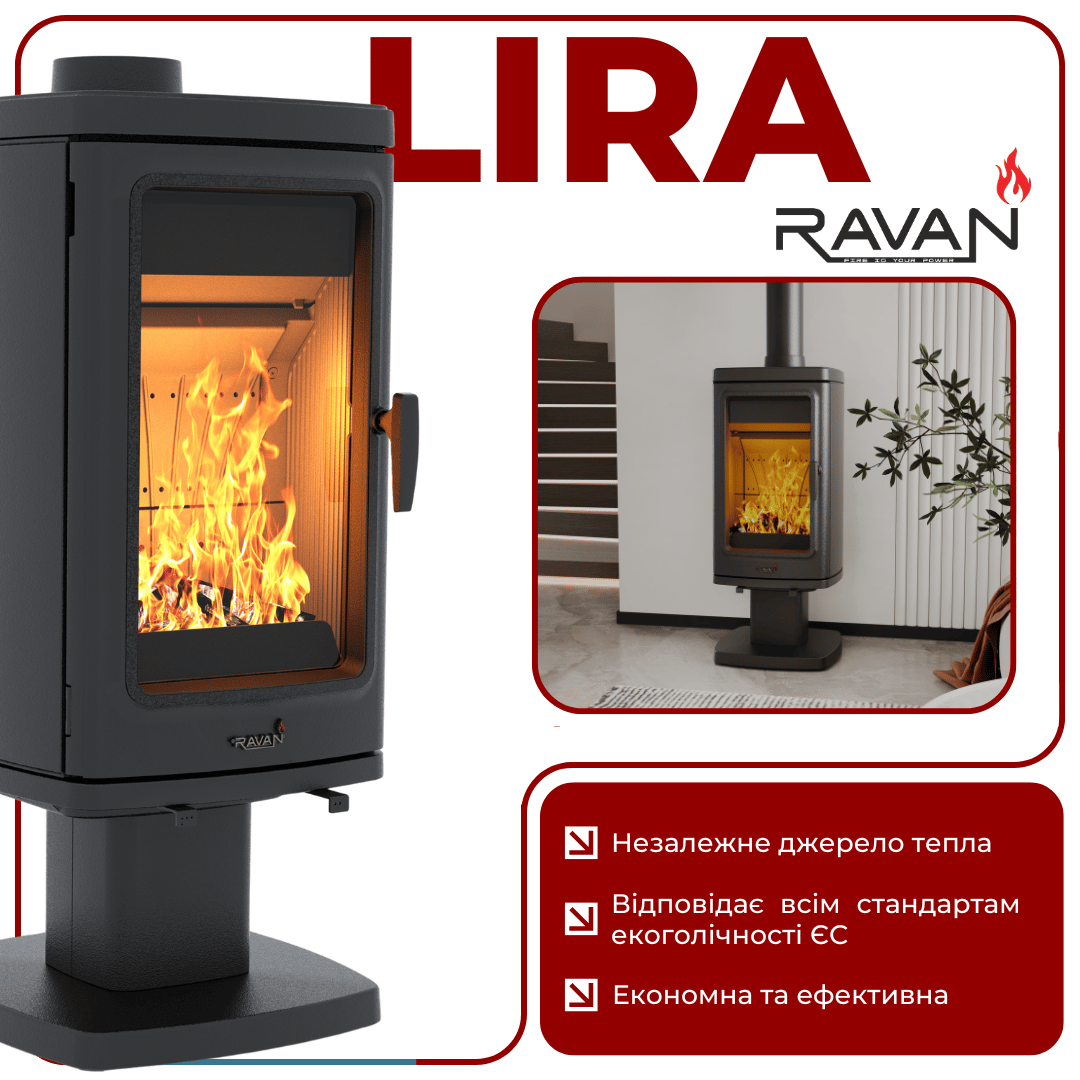 Чугунная дровяная печь-камин Ravan Lira 14 кВт