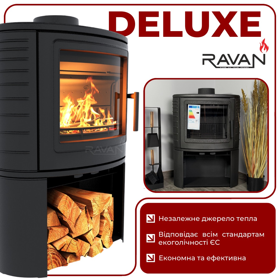 Чугунная печь камин Ravan Deluxe 14 кВт на дровах