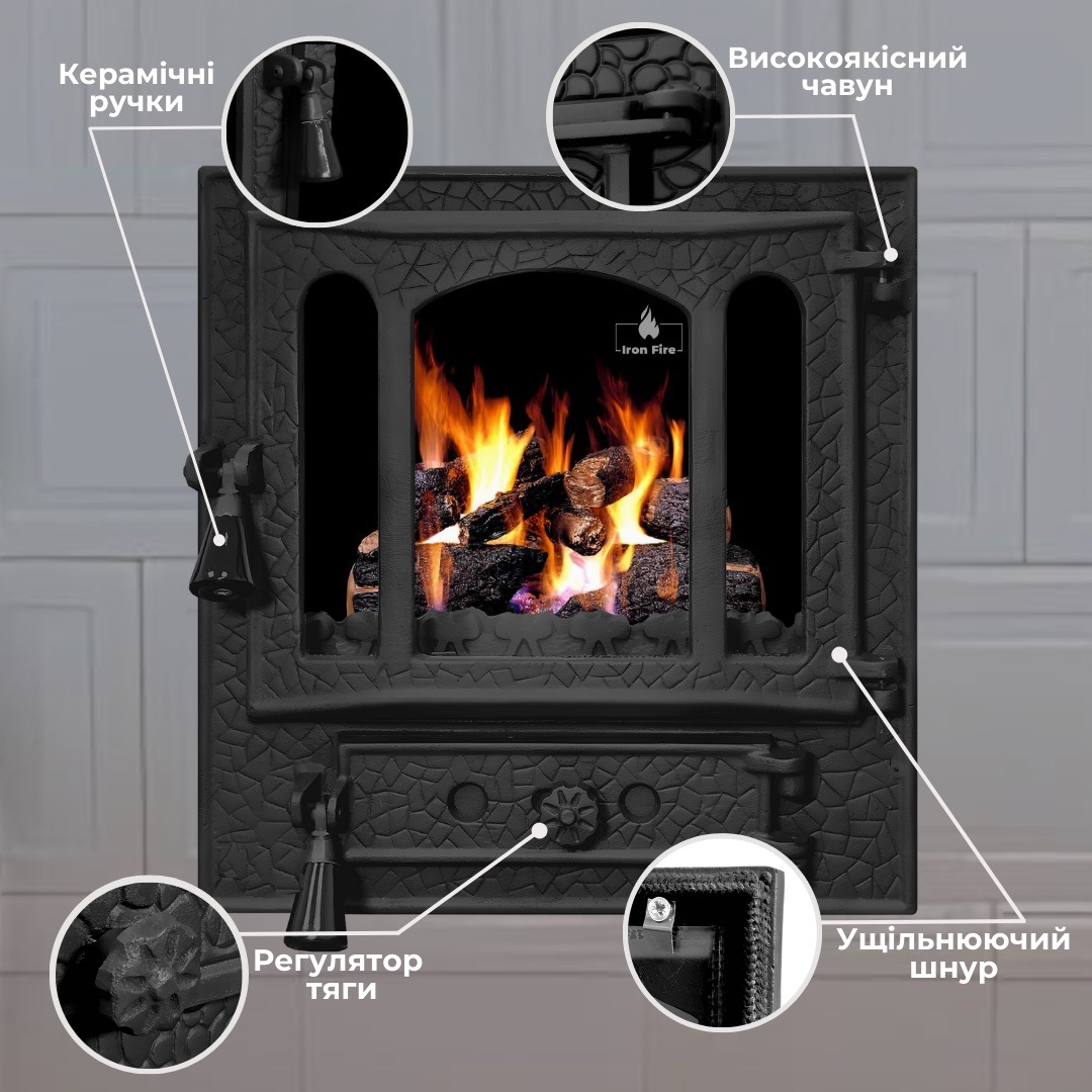 Чугунные дверцы для печи Iron Fire Amber — это качественное решение для каминов, печей и барбекю. Они оснащены огнеупорным стеклом Robax (4 мм), выдерживают до 800 °C, имеют регулятор тяги и керамическую ручку. Благодаря герметичности и высокой теплоемкости чугуна дверцы повышают эффективность печи до 50% и обеспечивают экономию топлива. Размер модели 465x485 мм, монтажные размеры — 410x410 мм. | ![]() |