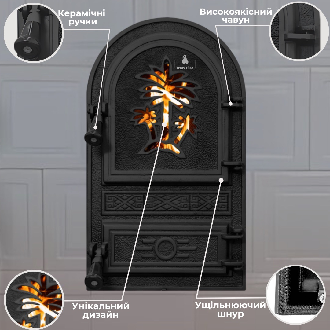 Дверца чугунная для печи/барбекю Iron Fire Palm 305х520 мм с огнеупорным стеклом Robax