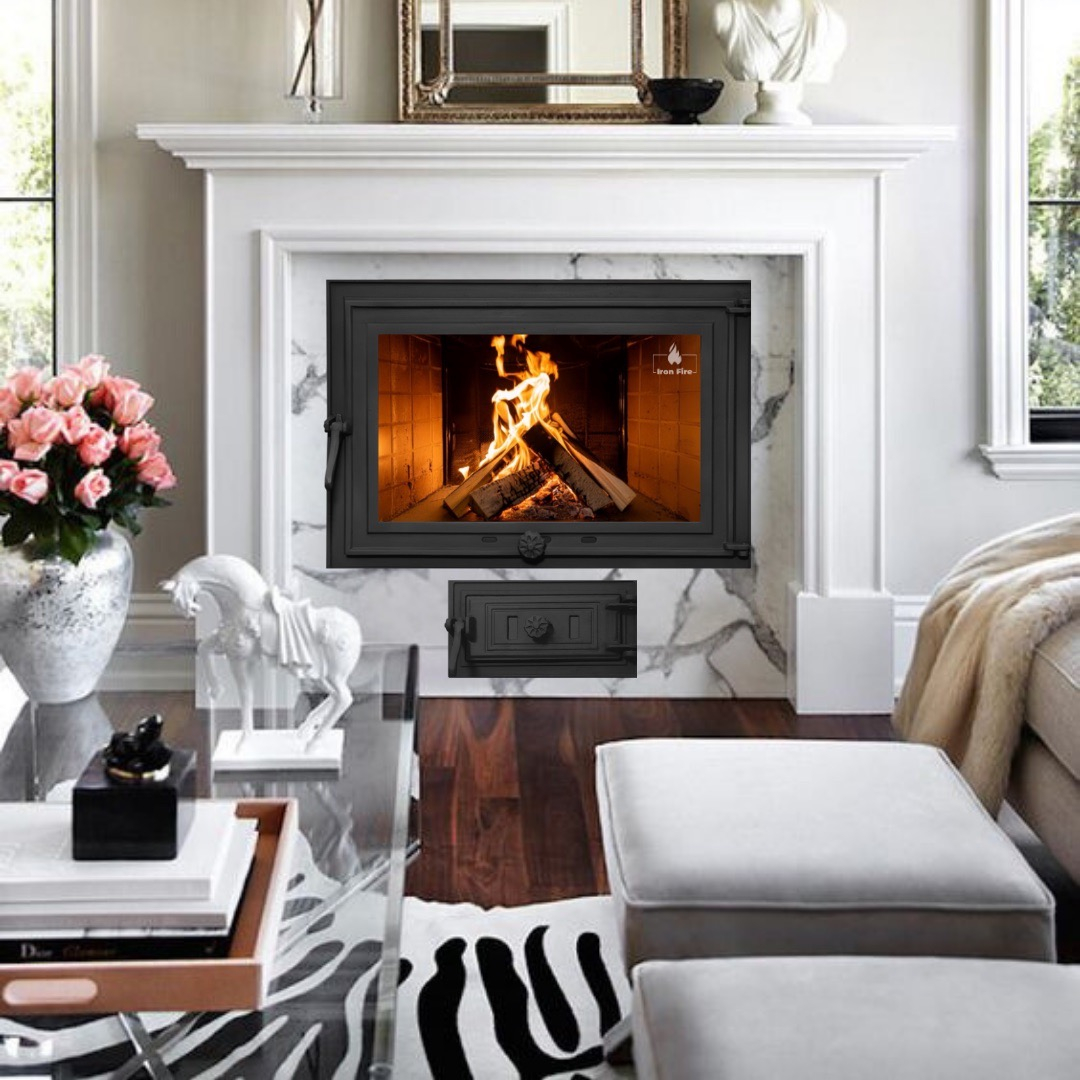 Комплект дверцы чугунной для камина/барбекю Iron Fire Adam 640x440 мм с огнеупорным стеклом Robax + поддувальная Style 50 315х165 мм