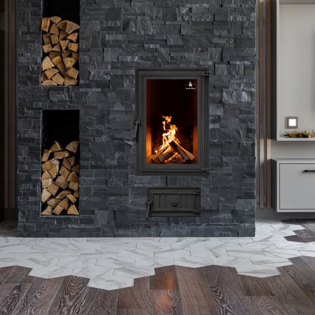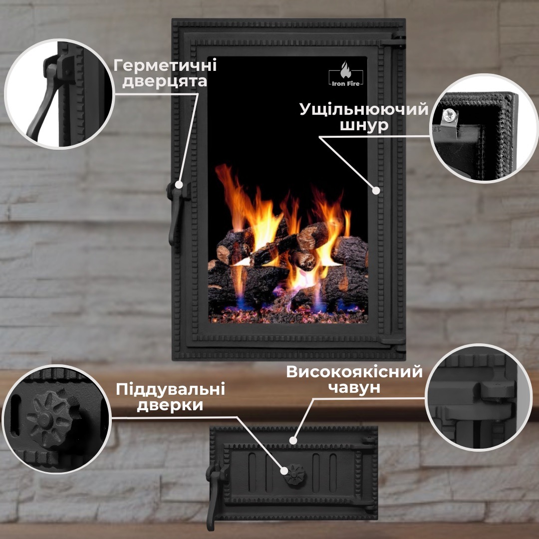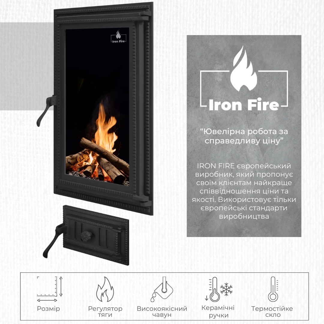 Комплект дверцы чугунной для камина/барбекю Iron Fire Brown 440x640 мм с огнеупорным стеклом Robax + поддувальная Style 35 315х180 мм