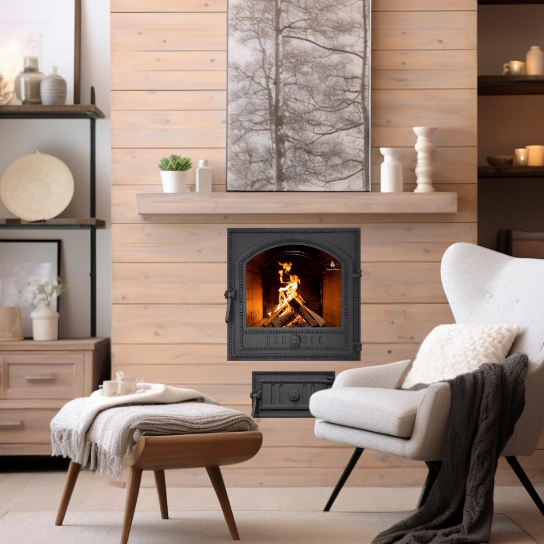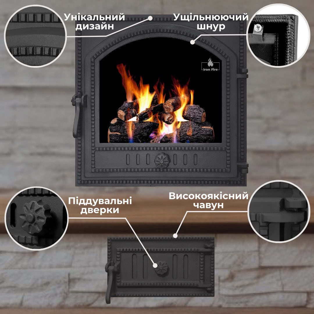 Комплект дверцы чугунной для камина/барбекю Iron Fire Cameron 480х475 мм с огнеупорным стеклом Robax + поддувальная Style 35 315х180 мм