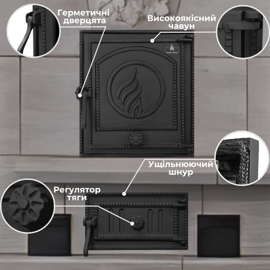 Комплект дверцы чугунной для камина/барбекю Iron Fire Style 35 WG 350х390 мм + поддувальная Style 35 315х180 мм