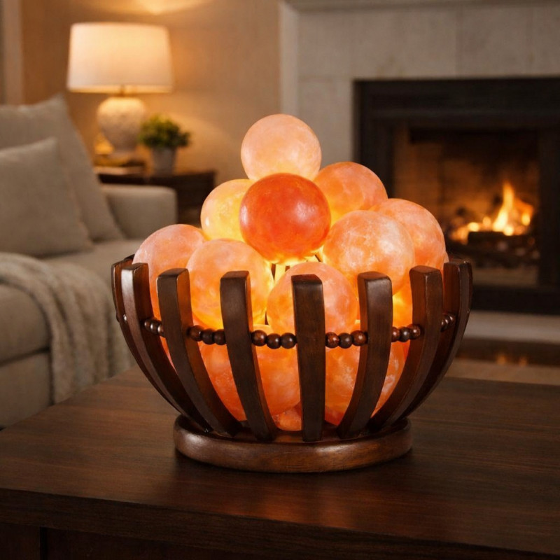 Світильник Кошик дерев’яний з соляними кульками (20×20×11,5 см) — це поєднання преміальних природних матеріалів: масиву натурального дерева та автентичної рожевої гімалайської солі. Дерев’яна чаша слугує надійною основою для соляних кульок, кожен з яких має природний мінеральний відтінок. При увімкненні пристрій випромінює м’яке бурштинове світло, яке проходить крізь грані солі, створюючи в приміщенні атмосферу спокою та комфорту.