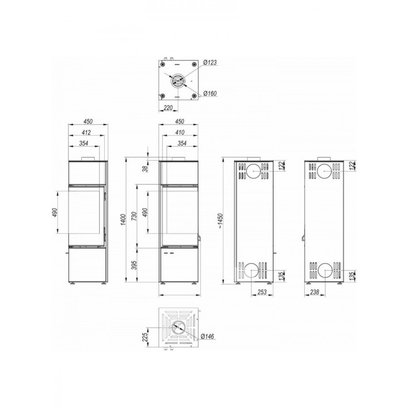 Сталева піч Defro Home QUADROOM LONG Чорний
